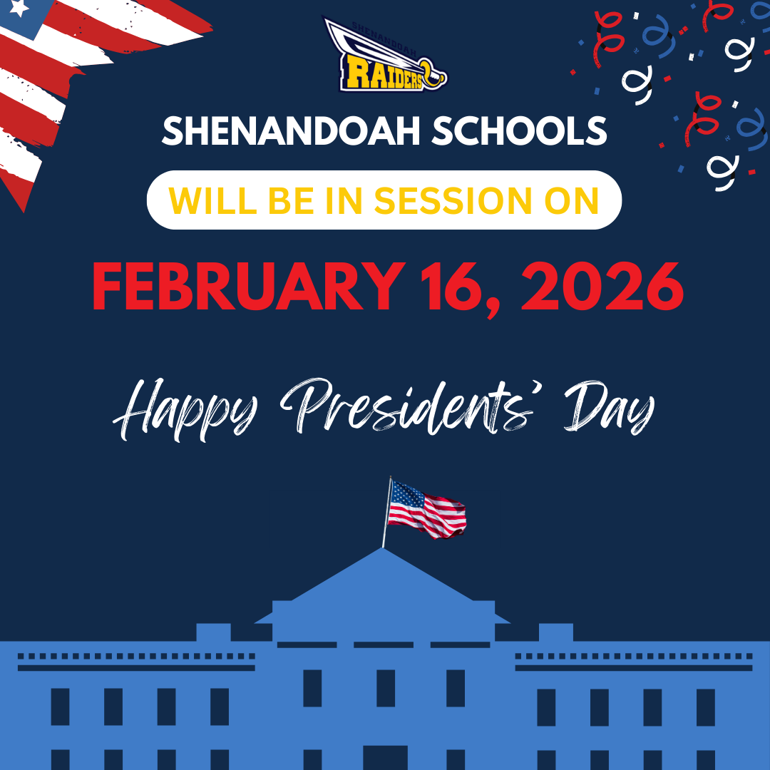 Shenandoah School Corporation will be in session on Monday, February 16th. This is a make up day for December 15th.